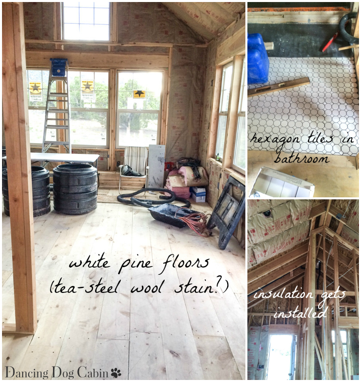 After returning from Nebraska, my husband almost literally turned around and went right back to the cabin without me so that he could install insulation, install the pine floors, and install the tile floor and shower pan in the bathroom. Wish I could have been there too, but this is how it will have to be... he can take larger chunks of time off than I can right now. I will join him when I can to help out....